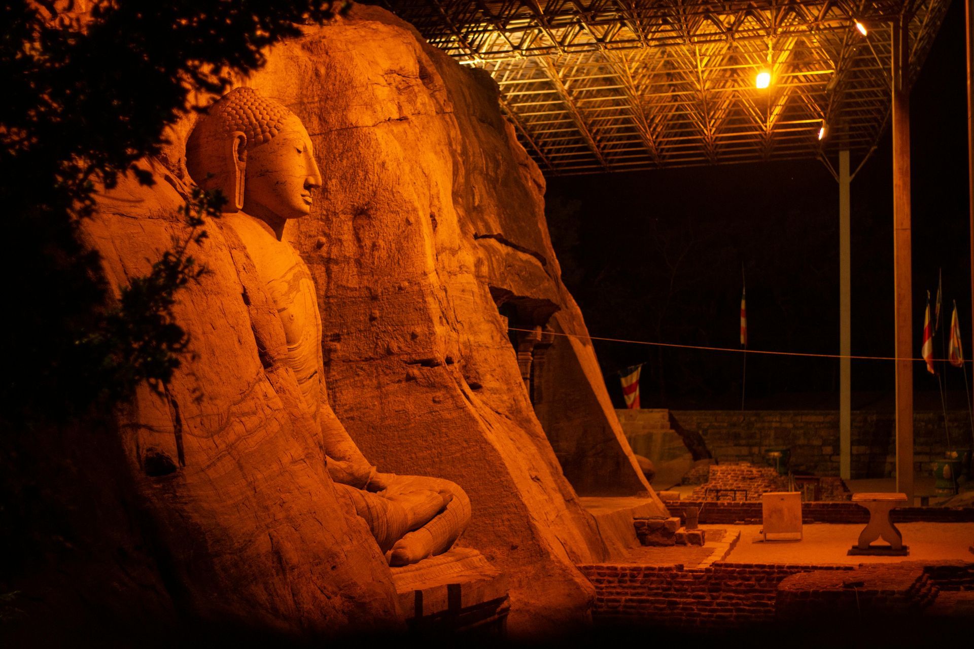 At the heart of Polonnaruwa stands the Gal Vihara — a set of four colossal Buddha statues carved from a single granite wall, considered masterpieces of Sri Lankan sculpture. Each figure embodies grace and spiritual calm, from the meditative seated pose to the solemn serenity of the reclining Buddha.